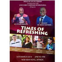 Bishop Benjamin and Bishop Methusela Ramos started the Time of Refreshing ministry in 1997 because they have been the burden of the Lord for his hurting servants. The Ministry aims to encourage servants of God to keep on walking, boldly and faithfully in their calling, as well as to help local churches discover and experience the destiny God has designed for each of them by getting right with God, and perceiving, their Pastor.